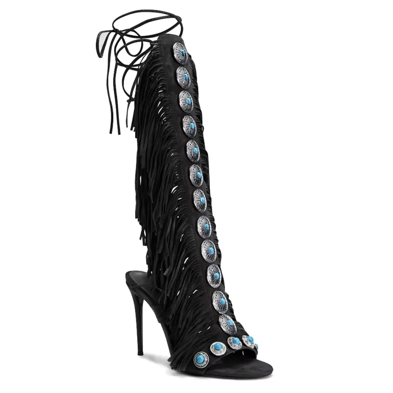 Sandale montante en daim à talon haut – Élégance raffinée et allure sophistiquée
