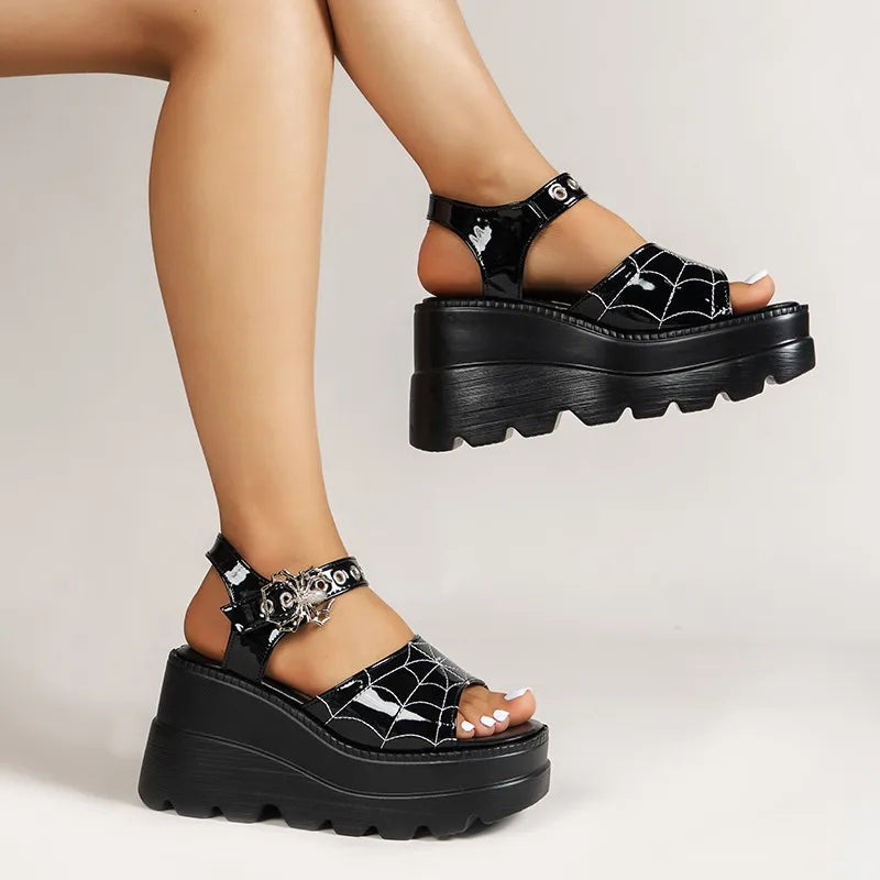 Un Style Unique avec la Sandale Talon Plateforme avec une Toile et une Araignée