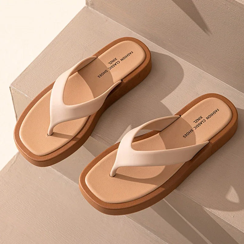 Sandale tong plate en cuir de haute qualité pour femme
